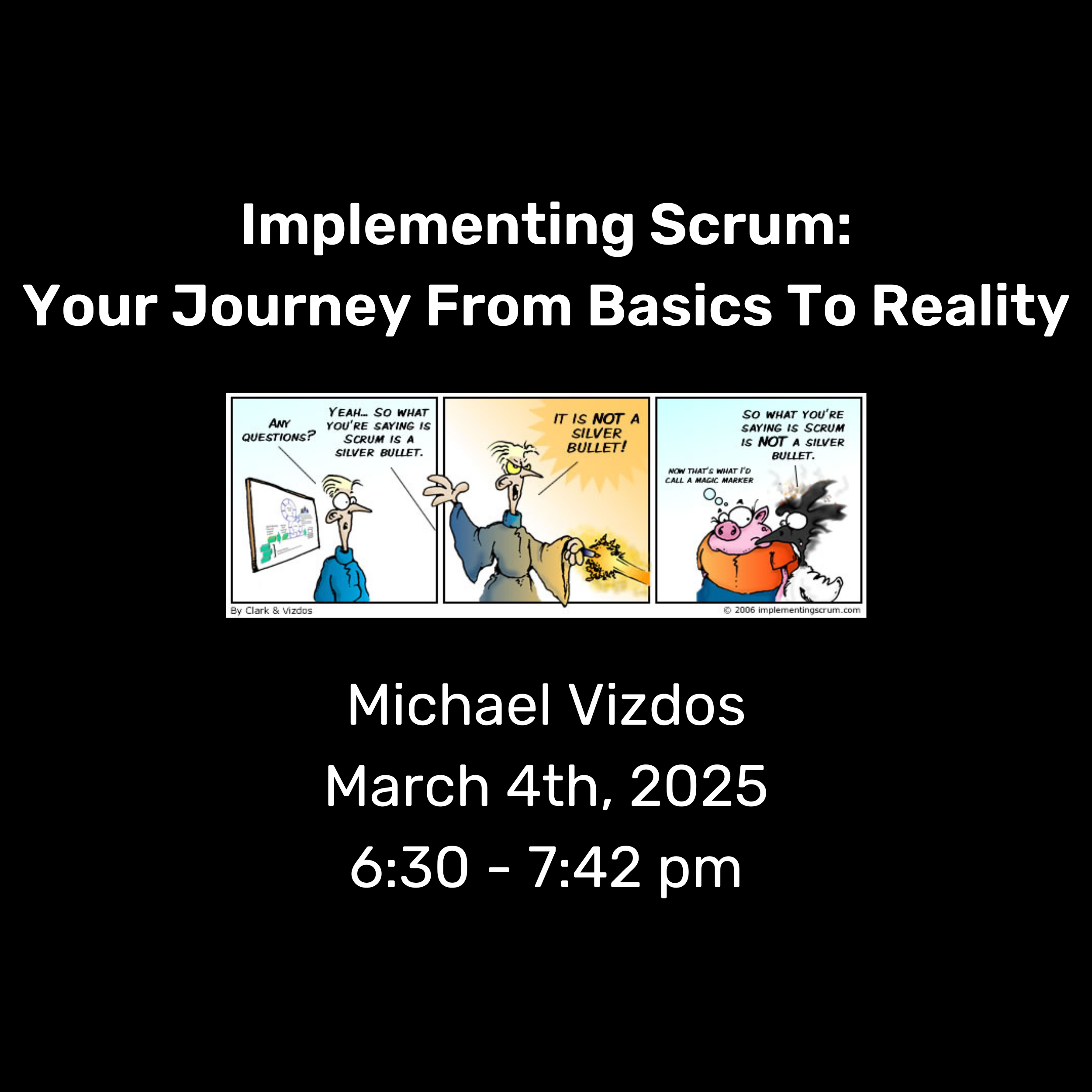 In this session, we’ll review the “basics” of Scrum (from the 2020 Scrum Guide — still the most current version in 2025) and discuss your journey, in reality, of Implementing Scrum with the other attendees during this Agile RTP Meetup Event.